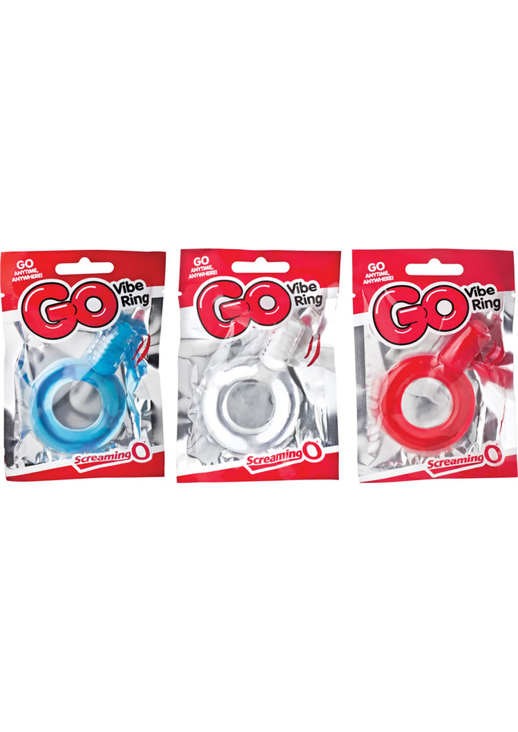 The Screaming O GO Vibe Ring is the most powerful quickie cock ring on the market, boasting 13,500 incredible RPMs in each package! This stretchy erection ring helps him maintain harder erections and have more intense orgasms while its micro motor buzzes with enough speed to help orgasms come faster and easier.The GO Vibe Ring will fit tight and snug, which slows blood flow to the penis to help keep him maintain harder, stronger erections and even help prevent premature ejaculation. Its unique vertical mini motor can be positioned in two pleasurable ways: wear it on top to stimulate the clitoris and help her reach orgasm with every stroke, or turn it around and position it behind the testicles to tickle and massage his taint! This multipurpose vibrating ring is perfect for men, women and couples looking for a quick, easy, affordable and disposable sex toy to enhance their sex lives! - Disposable with 40+ minutes of battery life - SEBS - Latex- and phthalate-free - Wireless